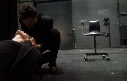 fantasmes, est le centre de gravité de ce monde de talons et costumes aux teintes sombres. Puis une femme entre sur scène, et se déshabille totalement, danse avec deux hommes, les fesses rougies par les mains qui claquent. Un peu plus loin, c'est un danseur à tête de gorille sans feuille de vigne pour couvrir son sexe qui est transporté sur la chaise, face au public, comme un totem.